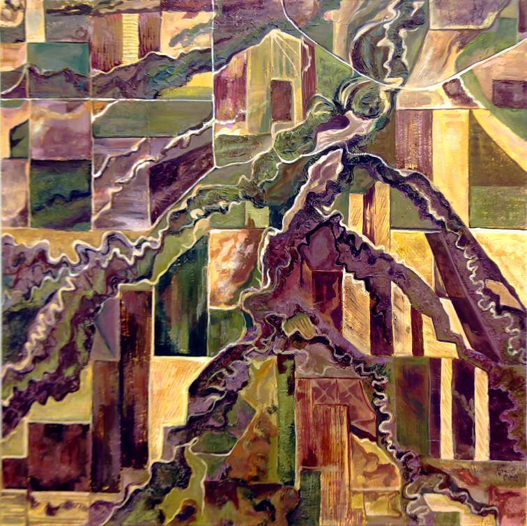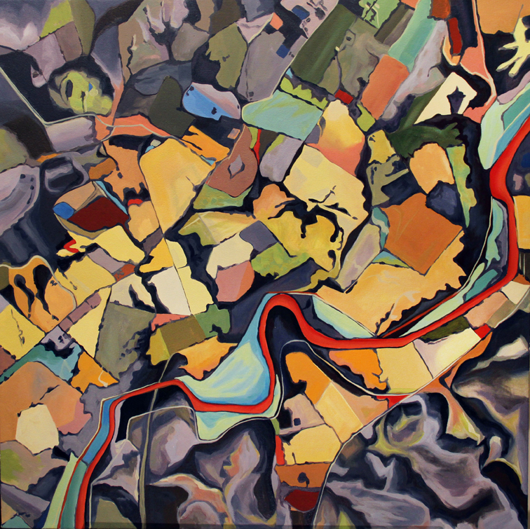 “River’s Way Patchwork” 32×32 inches, Oil on Canvas, 2014 SOLD