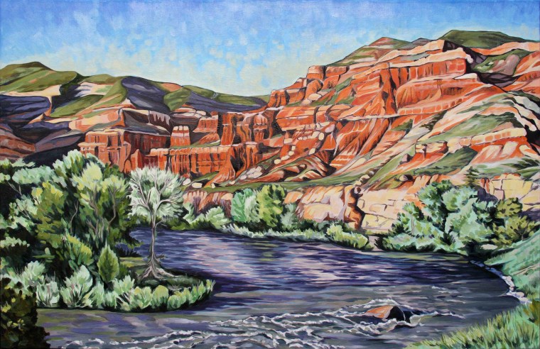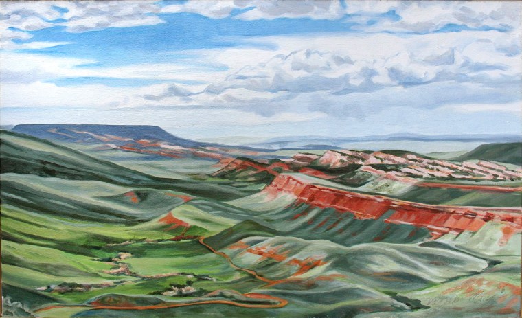 The wild country of the Rocky Mountains is a revelation, with a vivid palette of colors – the subtle pastels of the high desert soil, and the striking primaries of the sky and ridge-lines. The painted colors are concentrations and distillations of this natural palette. By uncovering the hidden intensity of color, these paintings reveal the luminosity felt when surrounded by the natural environment.