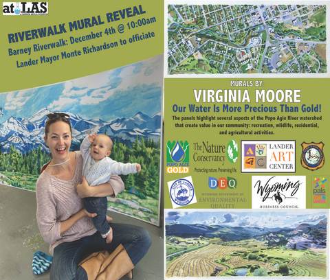 “The much-anticipated mural from At Lander Arts and Sciences (AtLAS) are being installed today, November 20th along the Barney Riverwalk in Lander.“